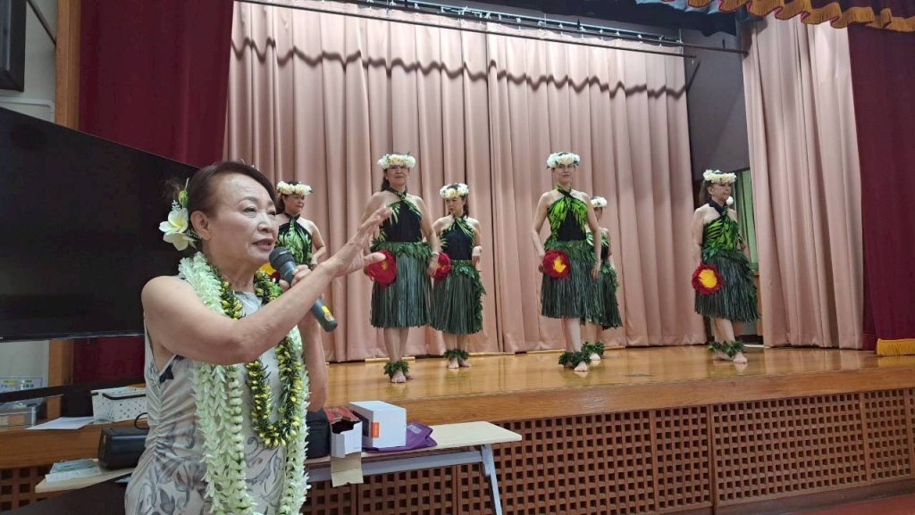 先生のわかりやすい説明に7曲のハワイアンミュージックに合わせて踊られました。