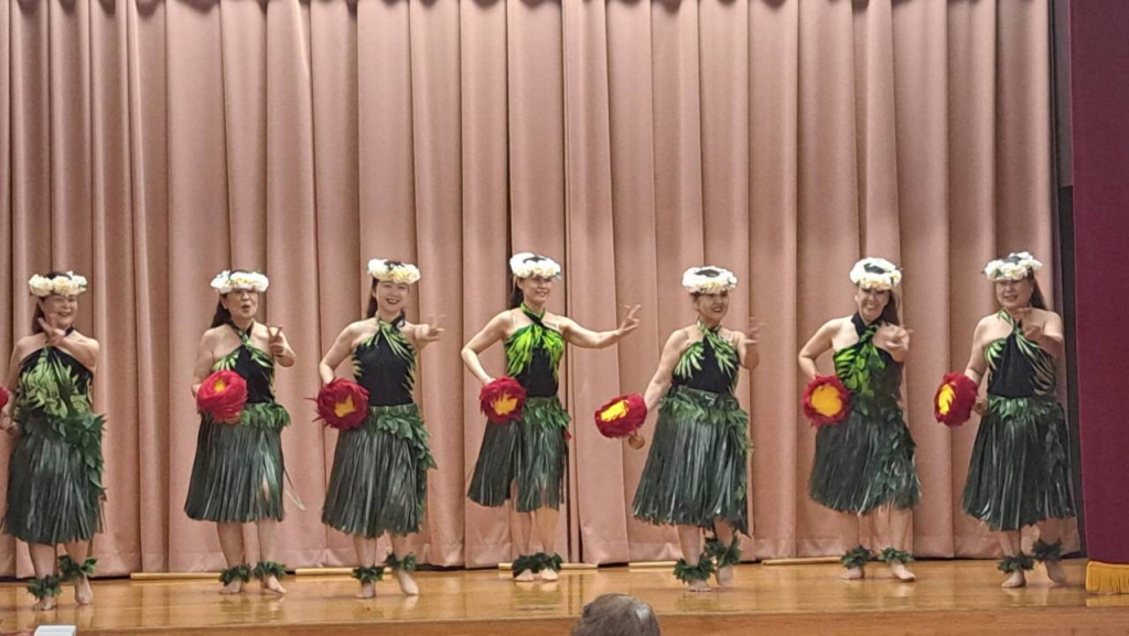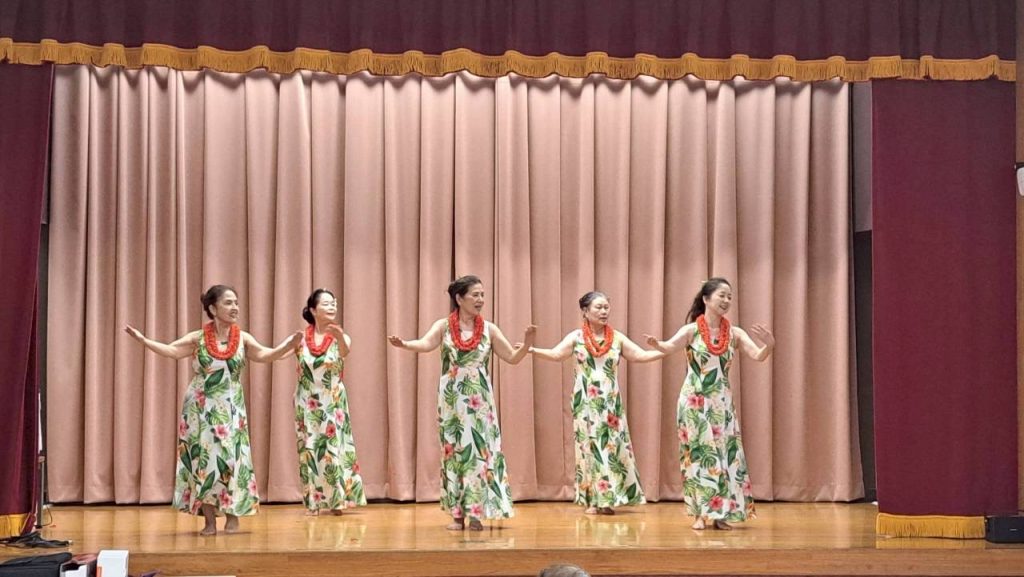 10月19日のさくら会で本格的なフラをスタジオホクラニの山城先生ひきいる生徒の皆さんに踊って頂きました。